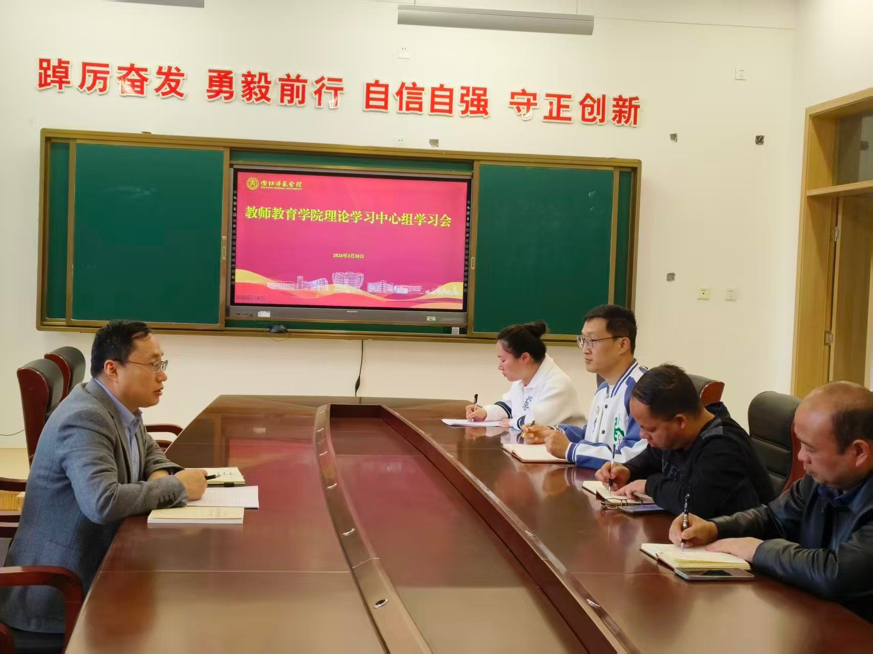 3 月 30 日下午,教师教育学院召开理论学习中心组专题学习会,深入学习习近平总书记关于树立和践行正确政绩观的重要论述及地方工作期间的生动实践,传达学习蔡奇同志、李希同志重要讲话精神。学院党总支副书记张凯主持会议,中心组成员参会。会议围绕“树立和践行正确政绩观”主题,深刻领会“为民造福是最大政绩”“功成不必在我、功成必定有我”等核心要义,明确学查改一体推进、强化政治监督等工作要求。参会人员结合岗位实际交流研讨,...