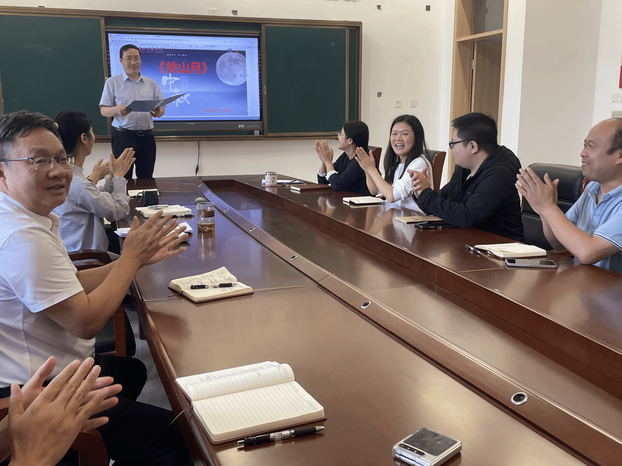 秋风送爽,丹桂飘香,在中秋佳节来临之际,为传承中华优秀传统文化,凝聚教职工团队力量,9月22日下午2:40,内江师范学院教师教育学院工会小组(隶属机关二工会)在培训中心431室举办“月满杏坛・诗韵中秋”教职工诗词大会。学院全体10名在职教职工齐聚一堂,以诗为媒,共赴一场兼具文化底蕴与教育情怀的中秋雅集。