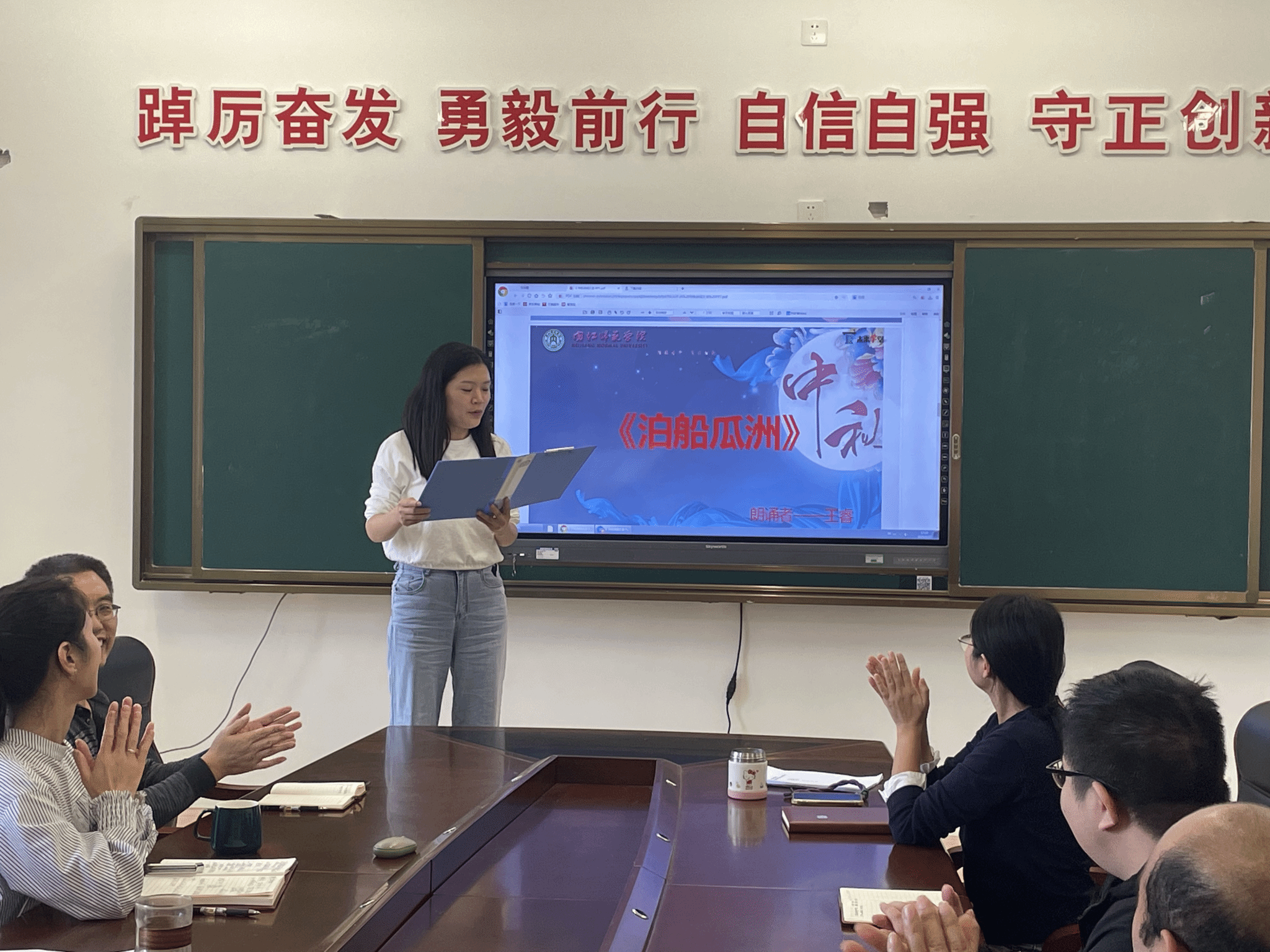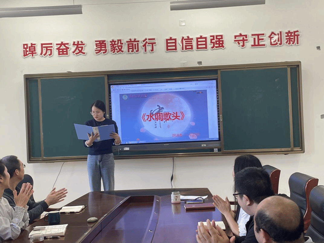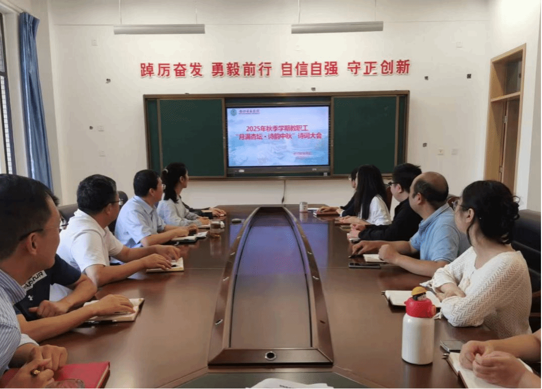 本次诗词大会以“月满杏坛・诗韵中秋 —— 让三尺讲台与千年诗魂同框”为主题,紧扣立德树人根本任务,将中华诗词之美与教师职业素养提升深度融合。活动前期,学院工会委员精心筹备,从场地布置(座位排列、设备调试)到流程细化,每一个环节都力求周全,为教职工打造了温馨雅致的诵读环境。