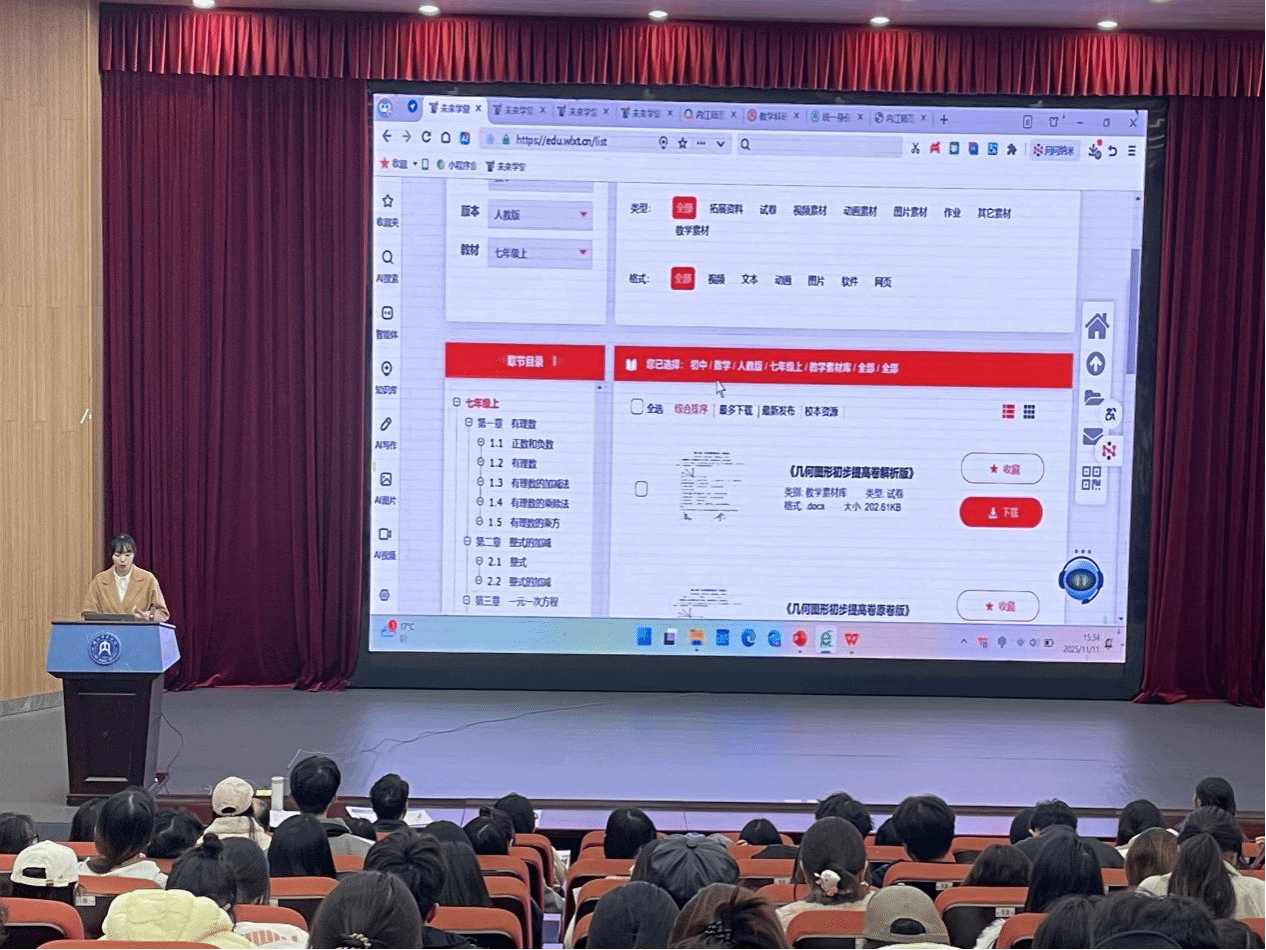 为切实强化师范生教育实践能力,助力其高质量完成教育实习、平稳实现从“学生”到“教师”的角色转变,教师教育学院于11月11日在大千楼A102成功举办“以师者之心,赴实践之约——‘未来学堂’师范生实习专题培训”。本次培训特邀“未来学堂”资深产品培训师何孟姣主讲,各师范专业师生代表、学科教学法教师共200余人参与培训。