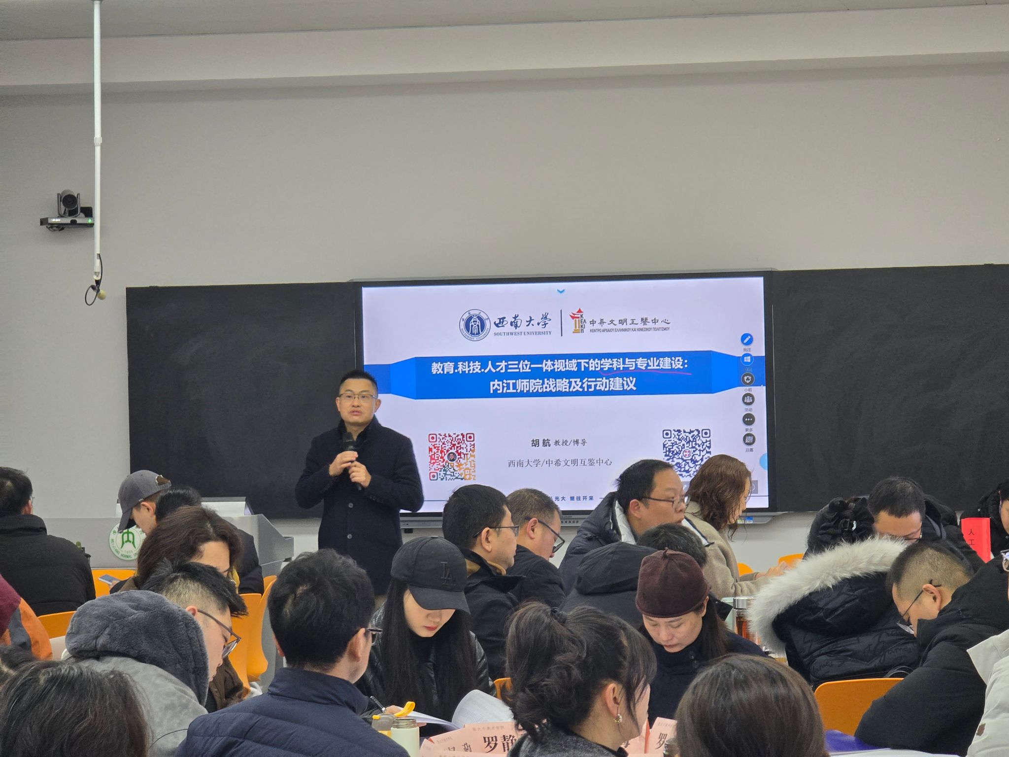 为深入贯彻落实习近平总书记关于教育的重要论述及教师队伍建设的系列重要指示批示精神,积极响应国家教育数字化战略部署。2026年1月6日至9日,由内江师范学院教师教育学院(教师发展中心)承办的骨干教师数字化教学能力提升培训顺利举行。来自各二级学院的教学副院长、专业负责人及教研室主任等核心教学骨干齐聚一堂,超过100人次教职工参与本次培训。