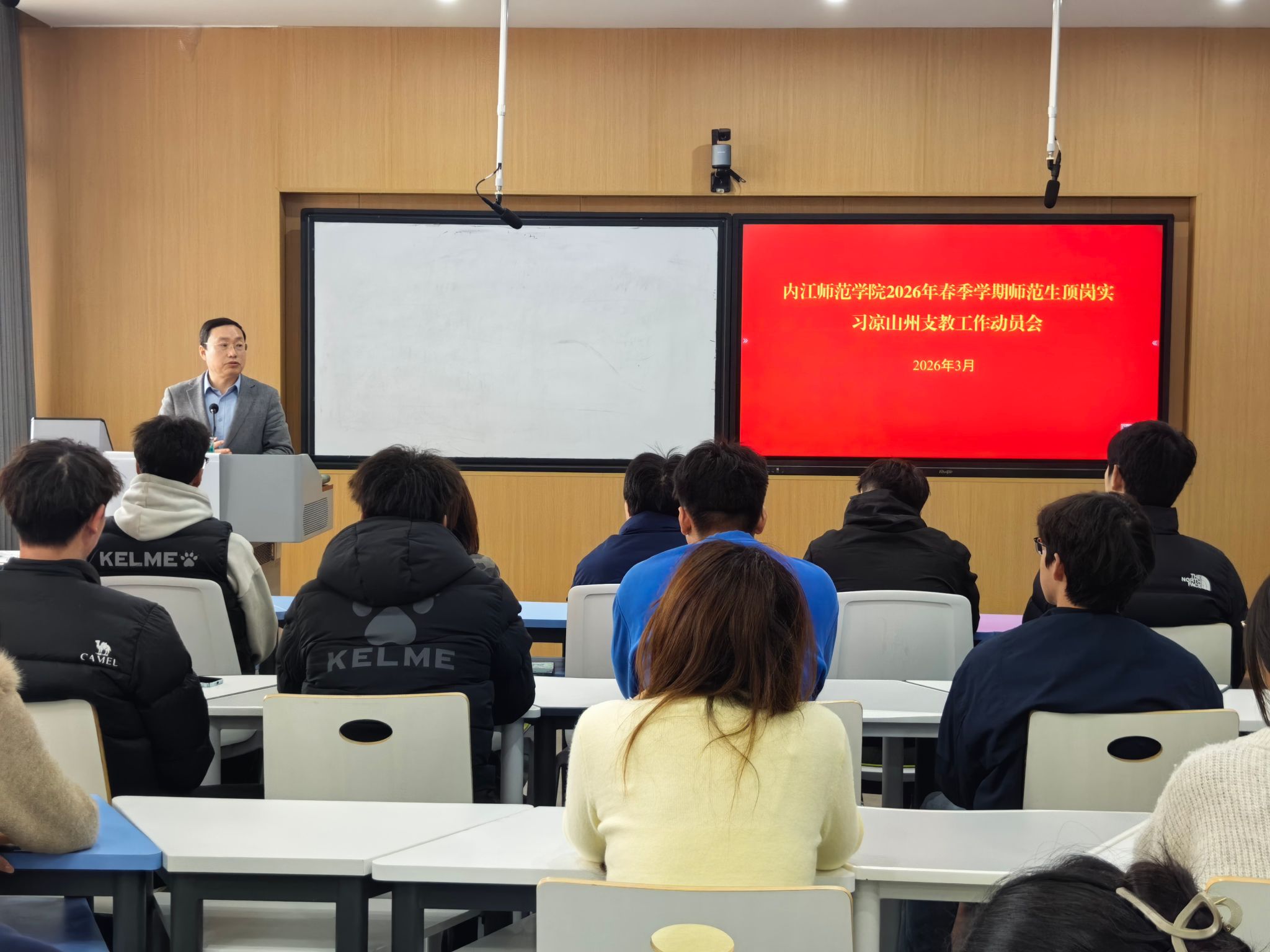 惊蛰之日,微雨卉新。内江师范学院于第 63 个“学雷锋纪念日”,在培训楼 505 会议室召开2026 年春季学期师范生顶岗实习凉山州支教工作动员会。会议于上午10:00举行,教师教育学院副院长(主持工作)张凯、学院相关负责教师及顶岗实习支教学生参加会议。